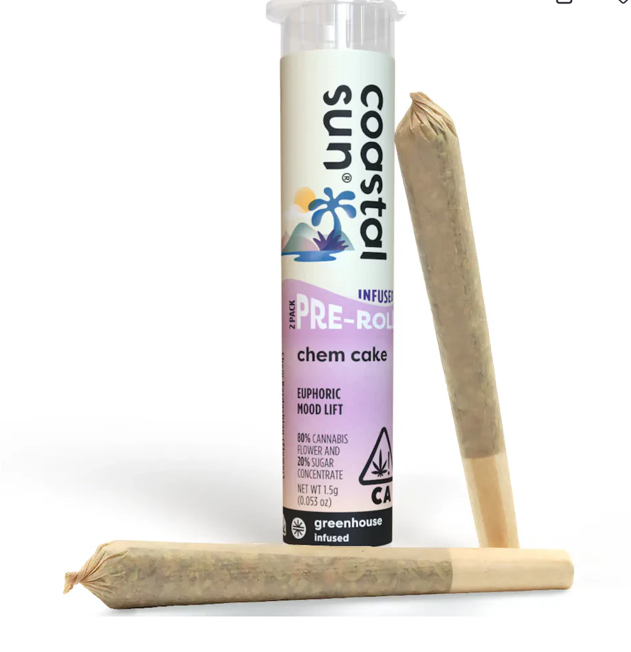 Coastal Sun Infused Prerolls 2pk 1.5g - Chem Cake 52%