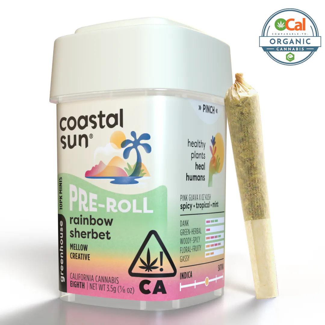 Rainbow Sherbet is a cross between Pink Guava and OZ Kush. It offers vibrant flavors of tropical citrus, spice, and refreshing mint accented by subtle notes of berries and earth. This cultivar may spark inspiration. Users note it can be perfect for any time of day to elevate mood, relieve body tension, and help maintain focus on daily tasks.