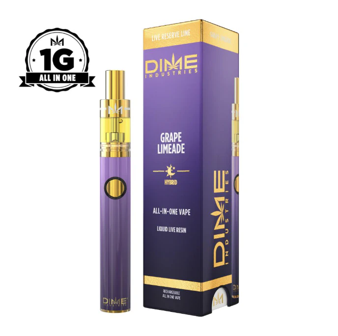 LIVE RESERVE LINE: Grape Limeade (HYBRID)This hybrid strain produces a rich, sweet aroma you can enjoy day or night. With uplifting and arousing effects, this strain offers a body and head high that’s perfect for weekend downtime. For full effects, we recommend not smoking this alone! Powered by Dime Industries hardware, this device offers 3 heat settings, pre-heat function, easy air flow, and is USB-C rechargeable. Give your buds a delicious treat backed by the industry's most powerful battery!Genetics: Purple Panty Dropper X Family Jewels X MAC1Effects: Uplifted, Energetic, ArousedPrimary Terpenes: Myrcene, Humulene, Limonene