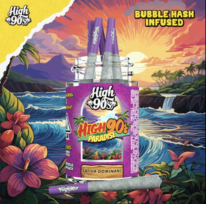High 90's - Paradise 29% - 0.5g High Fives Bubble Hashed Infused Pre-rolls 5pk