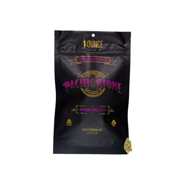 Pacific Stone’s Wedding Cake is an indica‑dominant hybrid (Triangle Kush × Animal Mints) offering dense, trichome-rich buds with hints of purple and pink, delivering a sweet, creamy vanilla flavor with earthy undertones. Expect an initial euphoric, mood-lifting boost followed by smooth body relaxation—ideal for evening wind‑down or laid‑back social evenings. With THC typically around 23–26%, it remains one of Pacific Stone’s top‑5 best‑selling strains since 2019